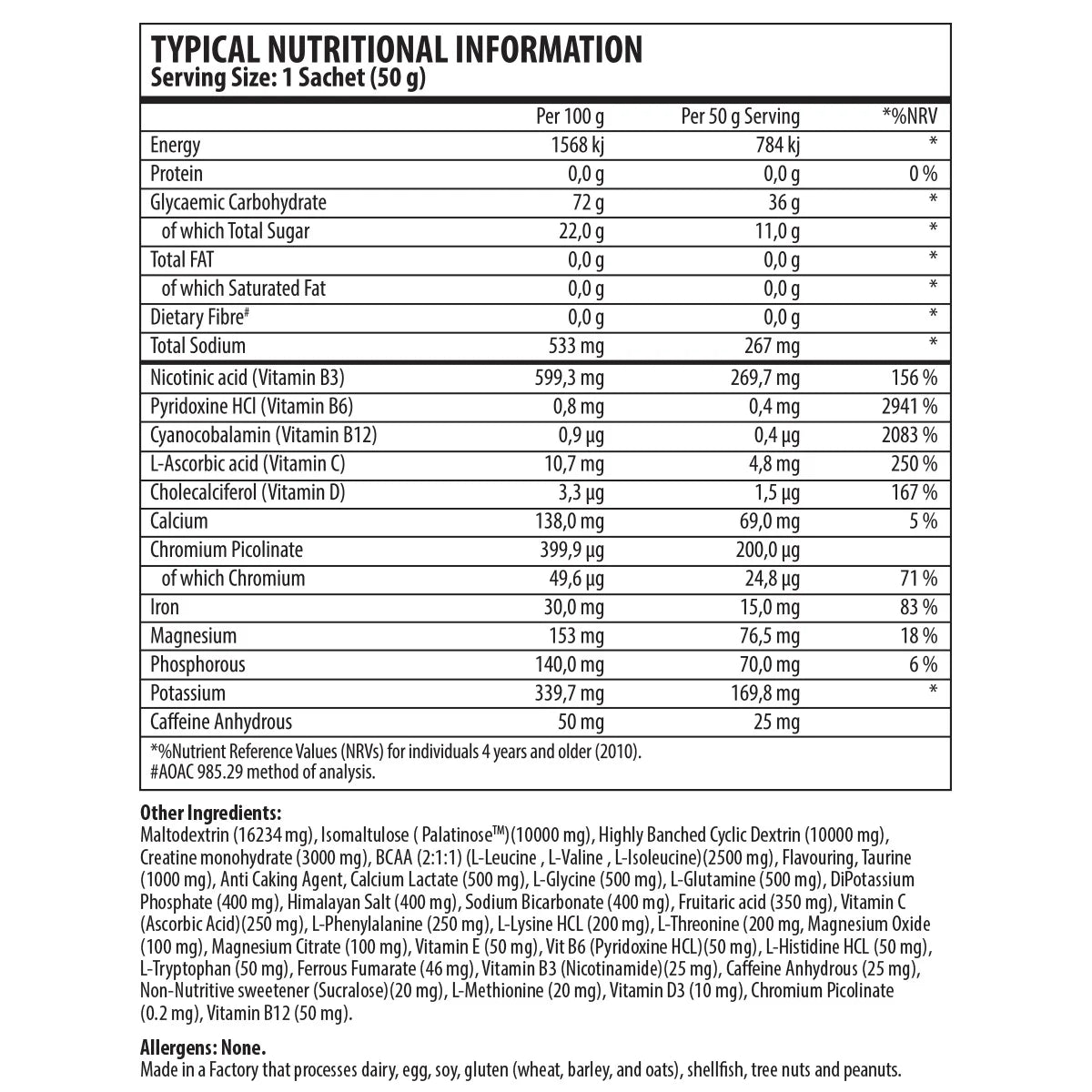 Experience the synergy of cluster dextrin and maltodextrin – carbohydrates chosen for their unique ability to provide stable energy without spiking insulin levels. This blend is not just about endurance but also about enhancing nutrient uptake and delaying fatigue.