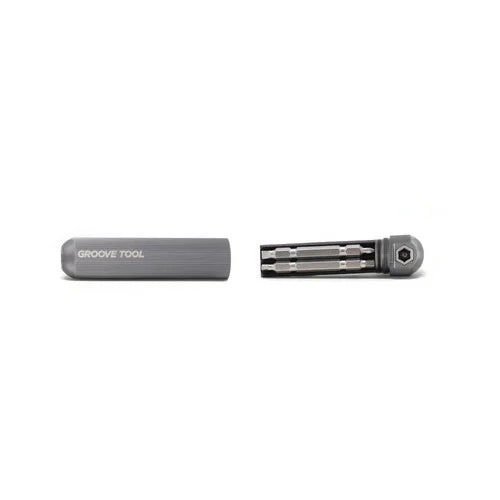 The Groove Tool Pro offers a minimalist design, weighing just 100g with 5 bits. It's constructed from CNC machined alloy, making it both durable and lightweight. Ideal for hard-to-reach places, it can be used in a ‘T’ or ‘I’ position for added versatility.