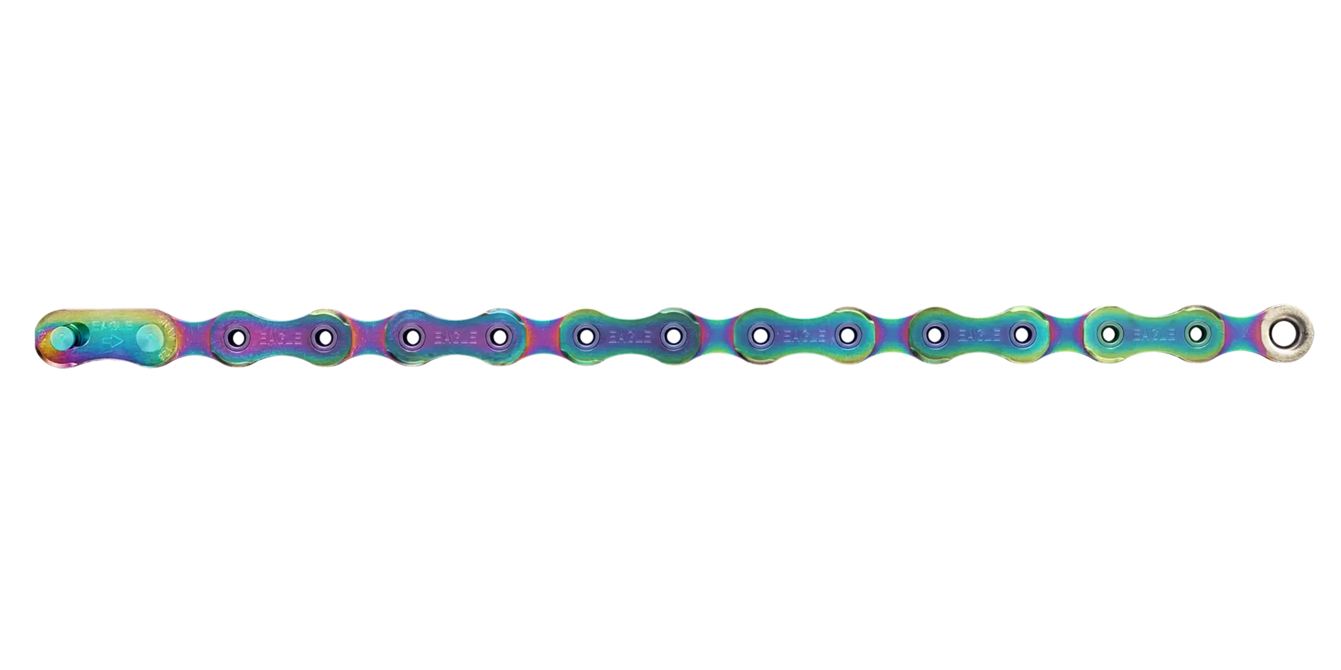 Finish Line Cycles proudly presents the SRAM XX1 Eagle Chain, a marvel in the world of cycling that redefines what it means to combine strength, durability, and aesthetic appeal in one seamless package. Engineered for those who refuse to compromise on performance or style, this chain is designed to meet the exacting demands of elite racers and cycling enthusiasts alike. With its innovative design and the all-new Eagle Colorsystem, the SRAM XX1 Eagle Chain is not just a component; it's a game-changer.
