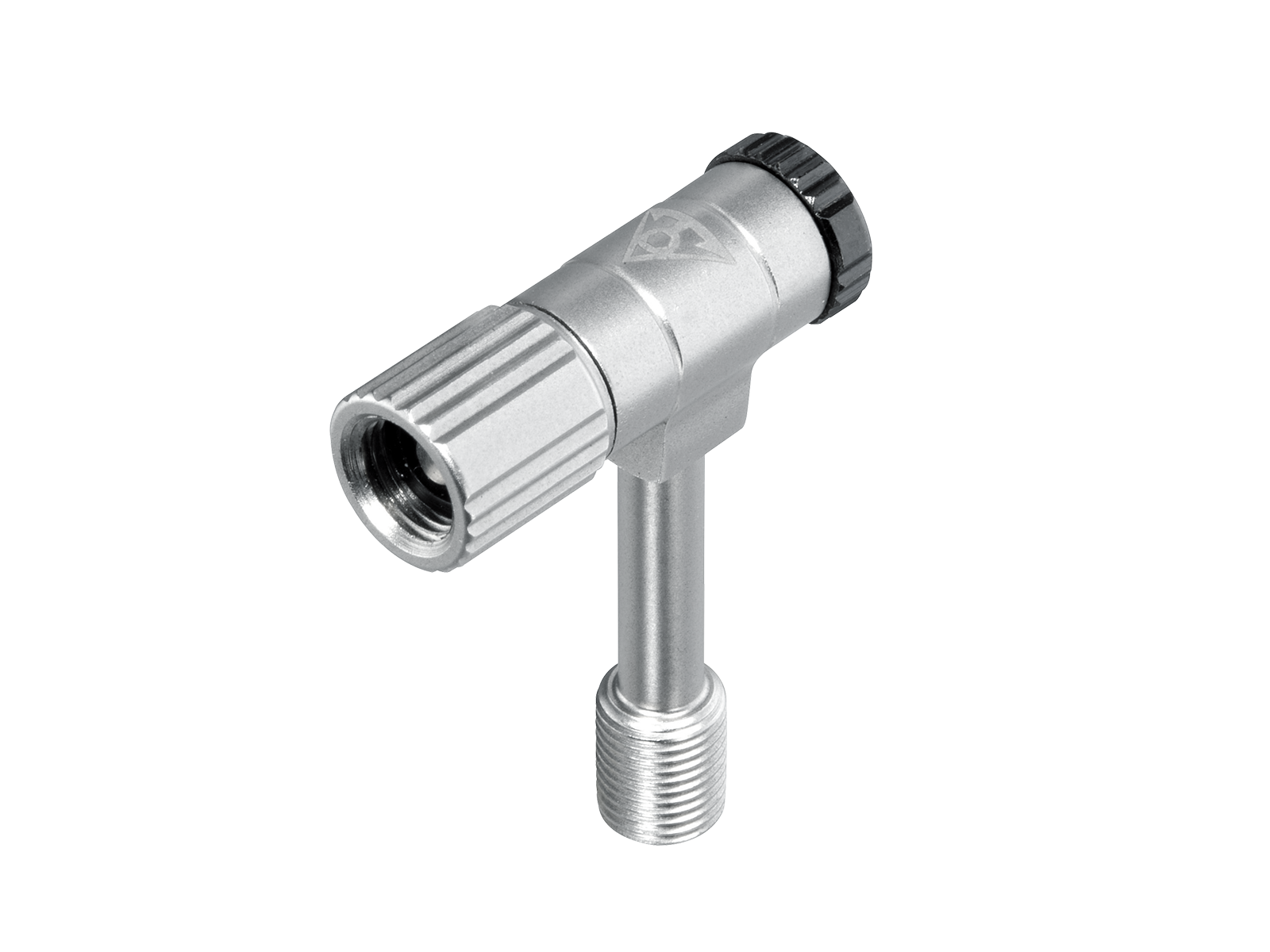 The Topeak Pressure Rite Presta Valve Adapter is a 16g, brass 90-degree connector crafted specifically for hard-to-reach Presta valves, making it an excellent choice for use on disc wheels.